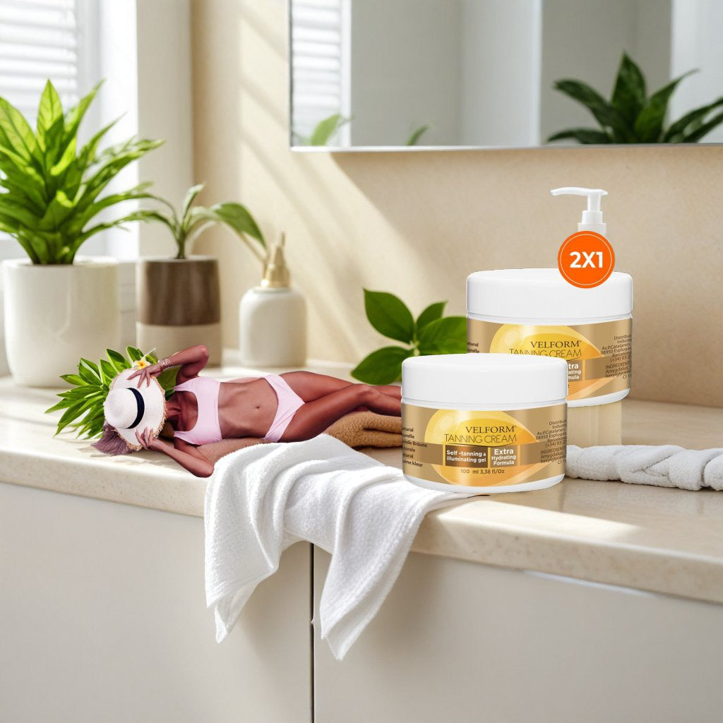 Transforma tu piel en menos de un minuto con Velform Tanning. Disfruta de una tez bronceada, luminosa e hidratada que resalta tu belleza natural.